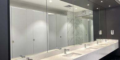 Flat and custom-cut mirrors with polished or beveled edges, ideal for interior design and décor.