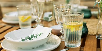 Cups, tumblers, wine glasses, and stemware designed for restaurants, hospitality, and retail.